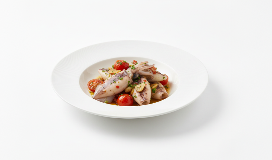 Pulpo troceado cocido (Octopus vulgaris) de Marruecos, 200–500 g, listo para uso profesional, carne tierna…