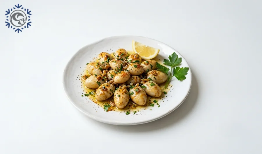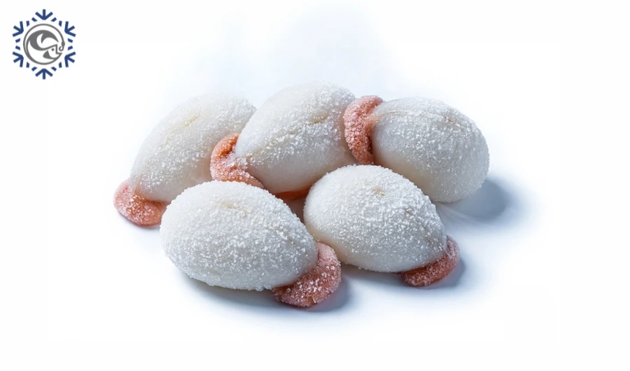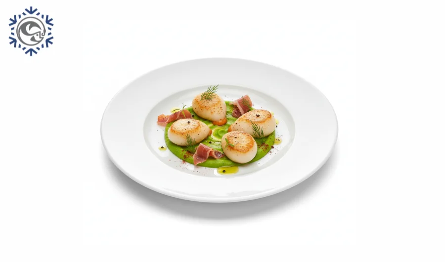 Huevas de sepia marca Pescaland, presentadas en caja de 8 kg, ideales para fritura y cocina tradicional en hostelería.