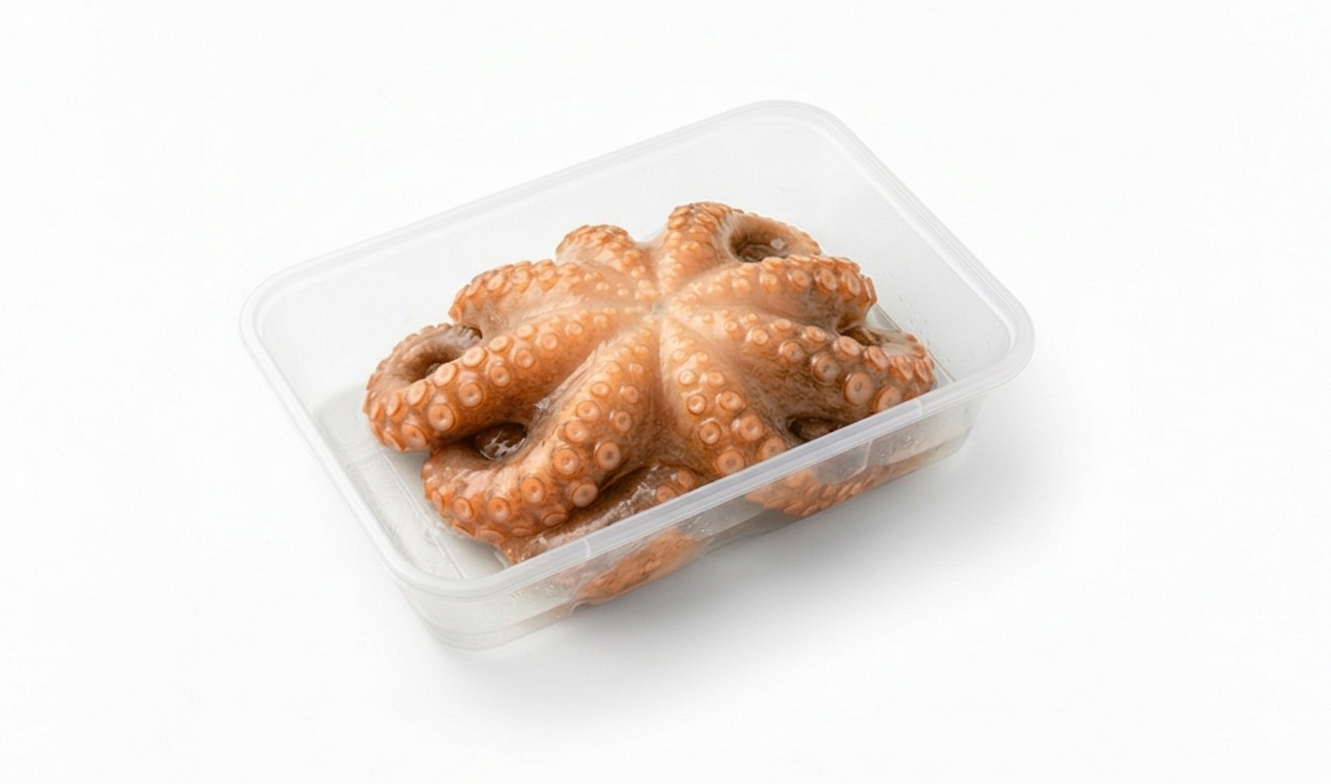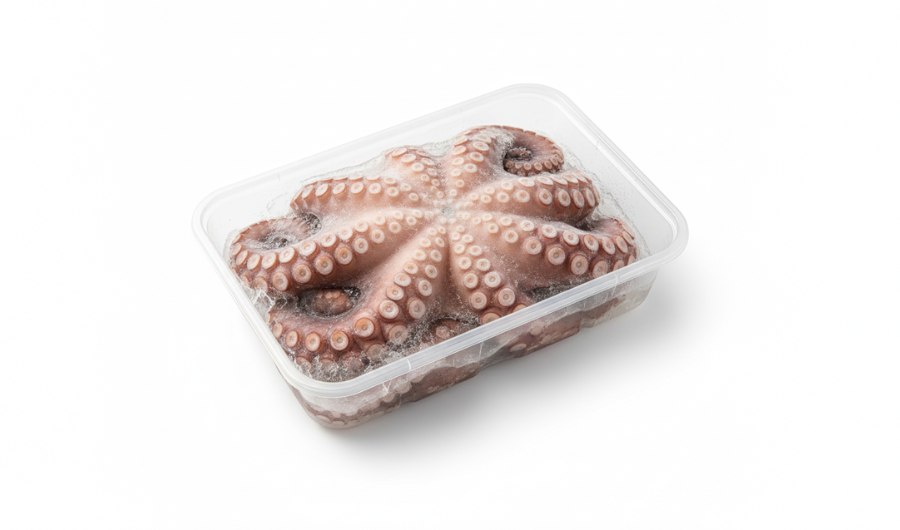 Pulpo entero congelado (Octopus mimus) 800–4000 g, pelado y eviscerado, sin glaseo, en bandeja, ideal para hostelería y catering.