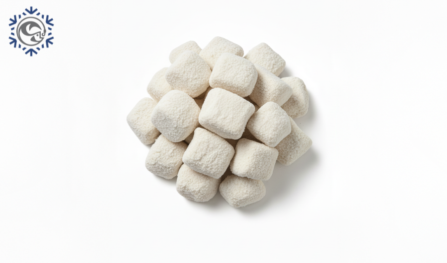Cazón en cubos adobados (Galeorhinus galeus) Pescaland, IQF, piezas uniformes y firmes, listo para fritura…